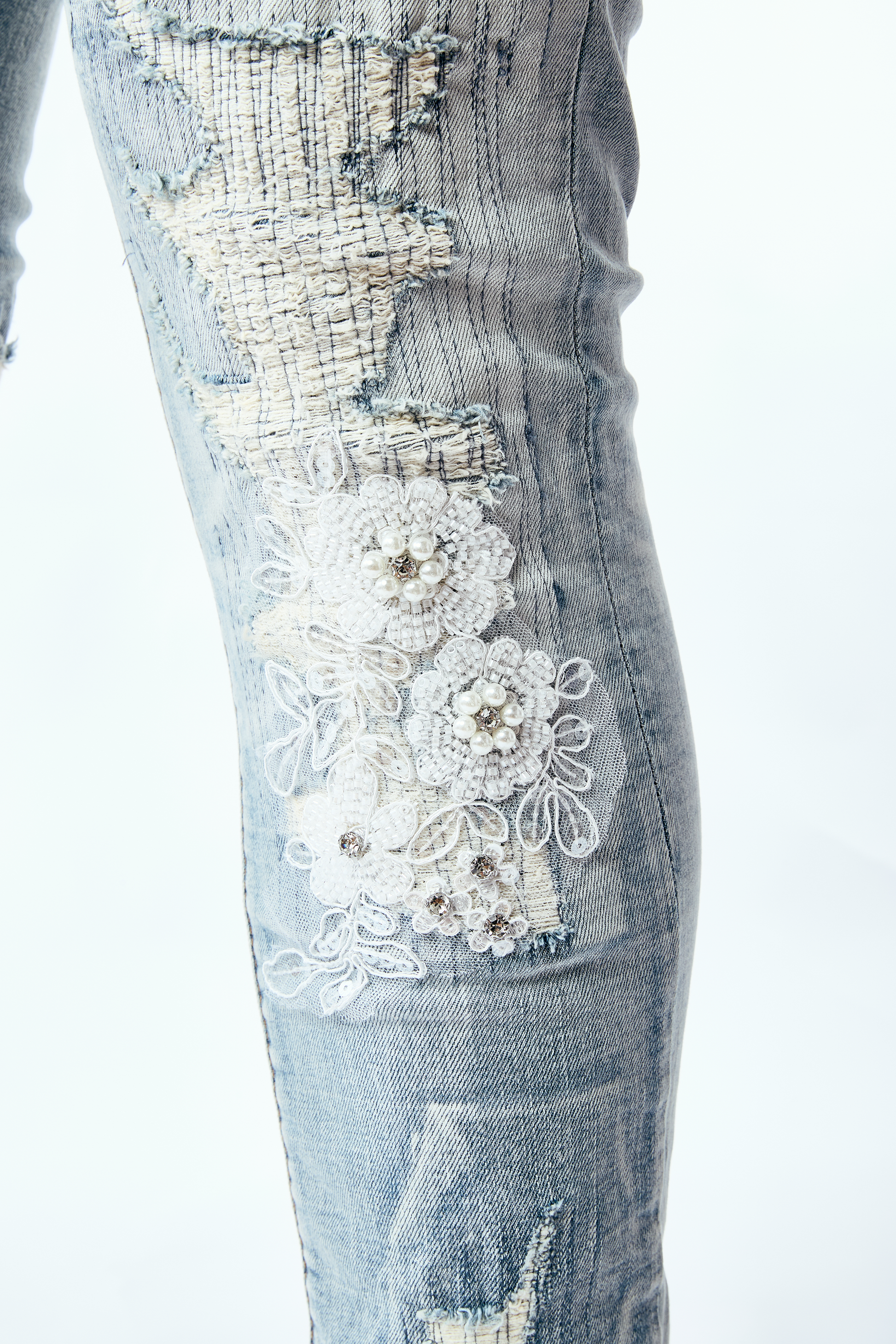 Detailing: Highly delicate floral embroidery throughout the jeans